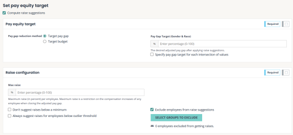 To gain raise suggestions, as part of reducing or closing pay gaps, you will need to set raise configurations.