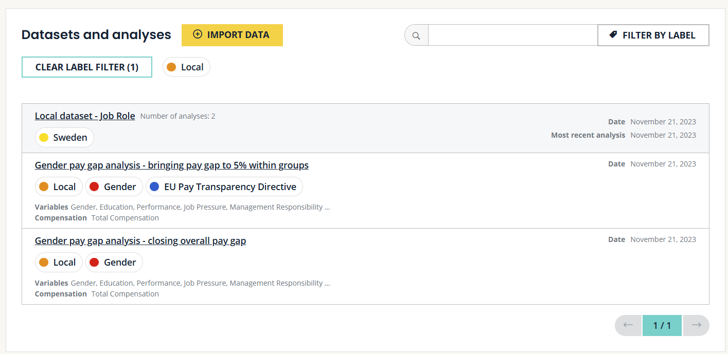 Organizing and filtering items can be hugely beneficial to help manage pay equity across your organization. However, you may want to go one step further and begin managing user access based on the attached labels, for example, to adhere to data privacy considerations. For more information about the access controls, and how to use the labels when restricting user access, refer to Detailed access control.