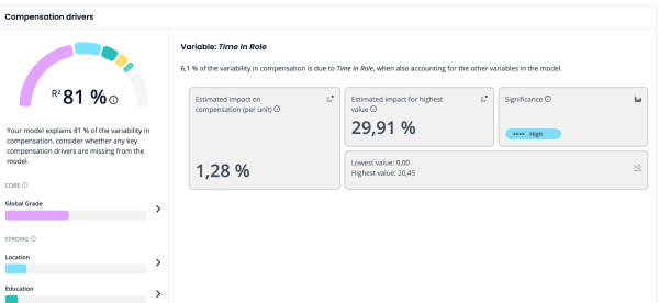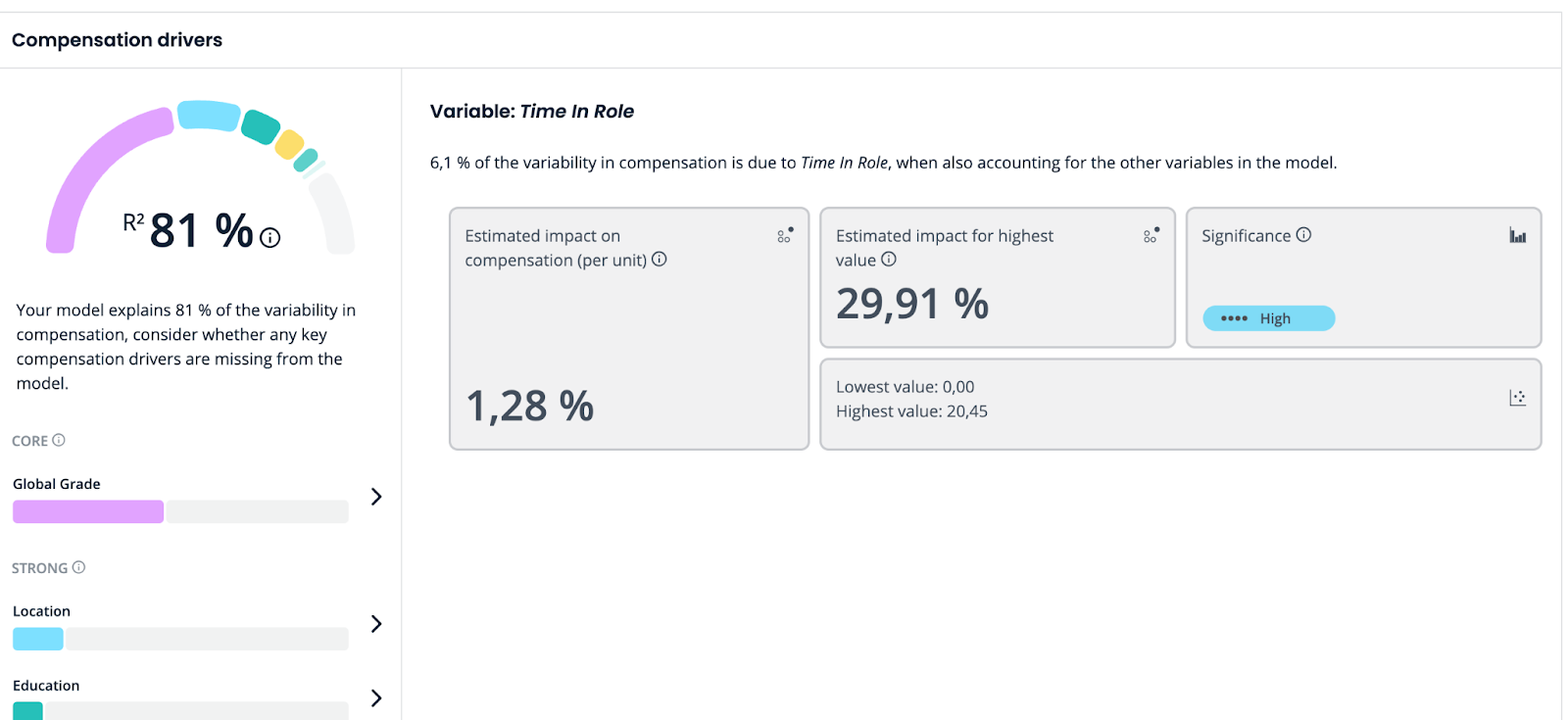 Even though the results of a salary model are technical, they offer valuable insights into the factors driving compensation. Since this model will serve as the foundation for salary raises and other features, it's crucial that it's both robust and accurately reflects your organization's operational realities and values.