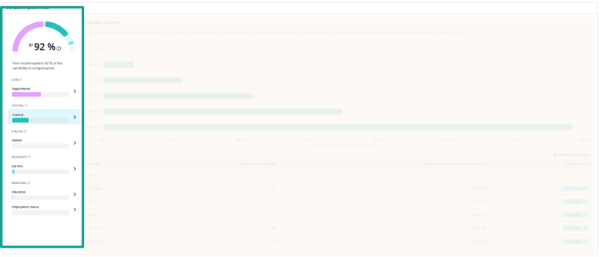 The score displayed at the left top (R-squared) represents the extent to which your overall model explains compensation variability in your dataset. The score is on a scale of 0 to 100%, where the goal is to achieve a high explanatory value (over 85%).