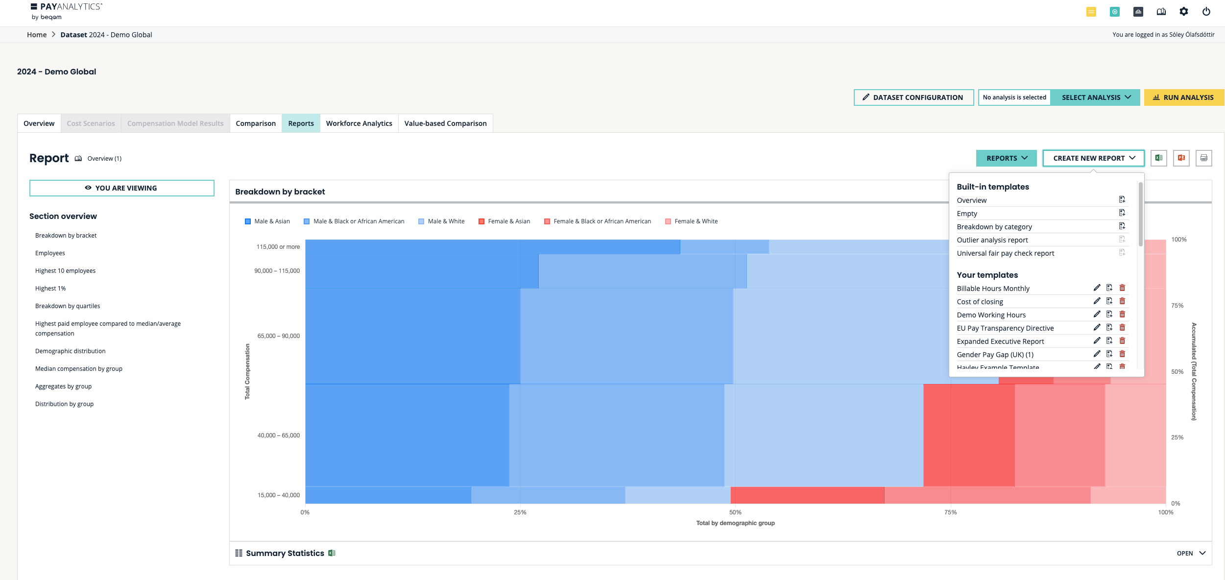 Reports are run on a specific dataset or analysis, which means that to get started you will need to select one of your existing data or pay equity analysis to run your report.