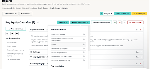 As no organization is the same, you may have specific reporting needs and requirements that exceed the built-in reports. To support you, the PayAnalytics reporting section includes a feature to generate your own custom reports.