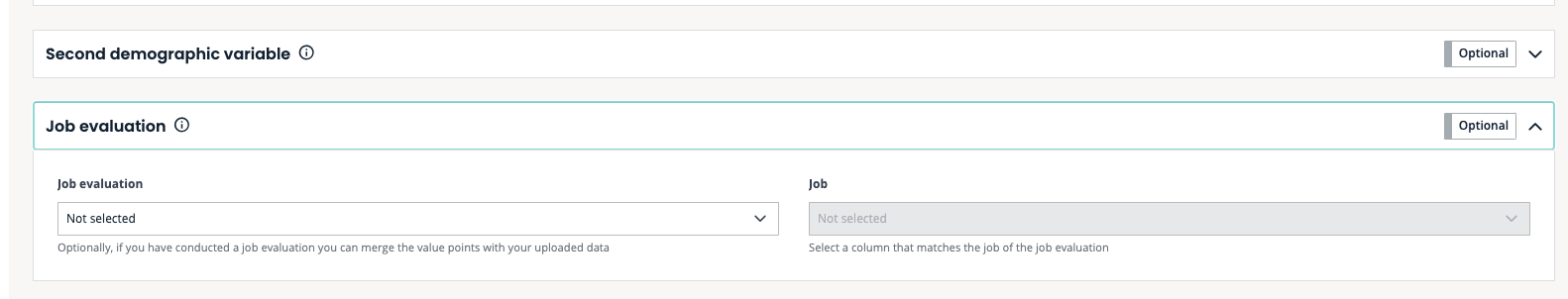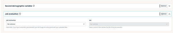 If you have already performed a job evaluation for all your jobs, this data needs to be included in a column in the uploaded employee dataset. Our Job Evaluation feature (for more information, see Job evaluation) is a system feature where you can establish the value of your jobs, either using our built-in job evaluation templates and wizards or upload your pre-existing job evaluation framework.