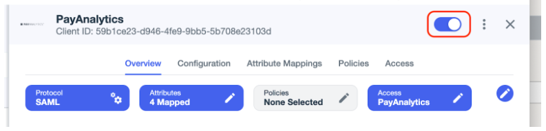 Figure 4.9: The "Enable configuration" slider in Ping Identity