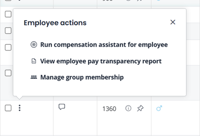 In the Selection column, click the three vertical dots icon to display the Employee actions contextual menu, as illustrated in the following figure: