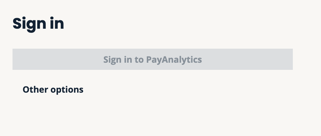 Dans ce cas, seuls les utilisateurs administrateurs peuvent se connecter en sélectionnant « Autres options », puis « Se connecter en tant qu’administrateur » et se connecter avec un nom d’utilisateur et un mot de passe. Si vous avez oublié votre nom d’utilisateur ou si vous vous connectez pour la première fois, cliquez sur Mot de passe oublié, saisissez votre adresse e-mail et suivez les instructions dans l’e-mail envoyé depuis bot@payanalytics.com.