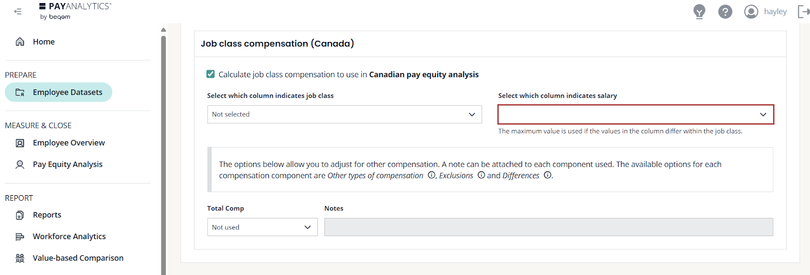 Lors de la configuration de votre ensemble de données dans PayAnalytics, assurez-vous de suivre les étapes supplémentaires spécifiques à la réglementation canadienne :